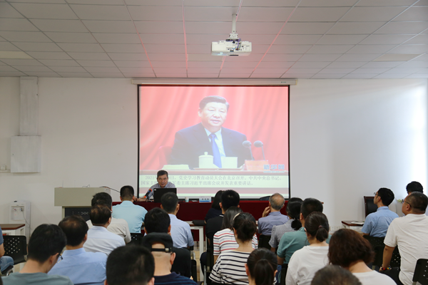 6月29日,校党委书记朱爱胜为机械技术学院和财经学院的全体党员教师讲授党史学习专题党课。朱爱胜书记以《不忘初心 牢记使命——学习中国共产党百年辉煌史》为题,从“为什么学习中共党史”“中共党史的基本脉络”和“中共党史的根本经验与规律”三个方面深入浅出地向全体党员教师阐述了中国共产党如何在百年波澜壮阔的历史进程中,由小变大、由弱变强,团结和带领中国人民夺取革命、建设、改革一个又一个伟大胜利,创造了人类社会发展史上一个又一个奇迹。