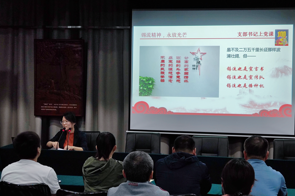 在无锡“第一支部”党建基地,后勤党总支全体成员参观了新中国无锡第一面五星红旗升旗处,瞻仰了秦起烈士铜像、第一支部会址群雕等。基地二楼的革命史画,浓缩了无锡人民在中国共产党领导下进行革命的奋斗历程,12位杰出的无锡共产党人生平,展现了无锡儿女在革命和建设年代作出的辉煌业绩。随后,后勤党总支第二党支部书记吴香菊同志为全体党员带来了一堂以锡流精神,永放光芒为主题的党课,党员同志们跟随红色足迹回到了无锡沦陷前夕的那段历史,同志们深深被锡流所展现的家国情怀、坚定信念、斗争意志和民族精神所感染。