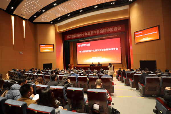 为认真学习贯彻党的十九届五中全会精神,开启学校发展新征程,11月26日上午,完美官方网页版举办专家报告会暨党委理论学习中心组(扩大)学习会。校领导、全体中层(含助理)干部、全体思政课教师、全体辅导员、部分学生代表等近200人参加报告会。会议由校党委书记朱爱胜主持。