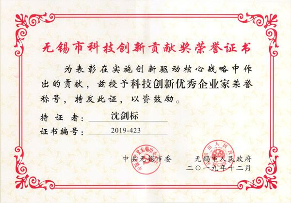 12月20日,无锡市委、市政府召开了“无锡科技创新贡献奖”表彰大会,我校79级校友沈剑标荣获“科技创新优秀企业家”称号。该奖项由科技创新优秀企业、科技创新优秀企业家、优秀研发机构、优秀科研人才、服务科技创新现金集体、服务科技创新先进个人等六个奖项组成,全市共表彰了29名企业家。