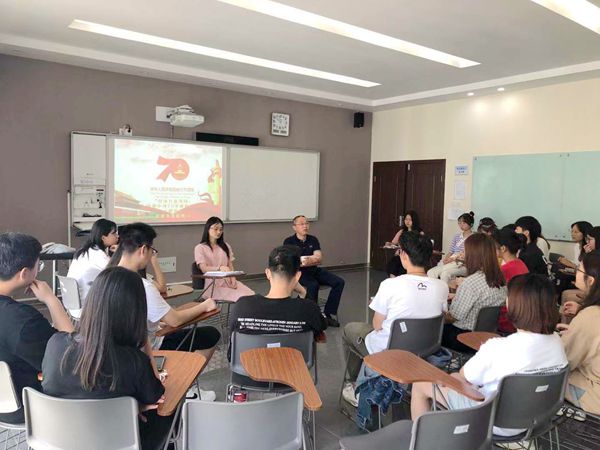 9月29日上午,外语与旅游学院徐霞客创新班18级国教505教室开展“传承红色基因,向新中国70华诞献礼”爱国主义教育主题班会。班会由班主任叶设玲主持,副校长强伟纲出席了此次主题教育班会。