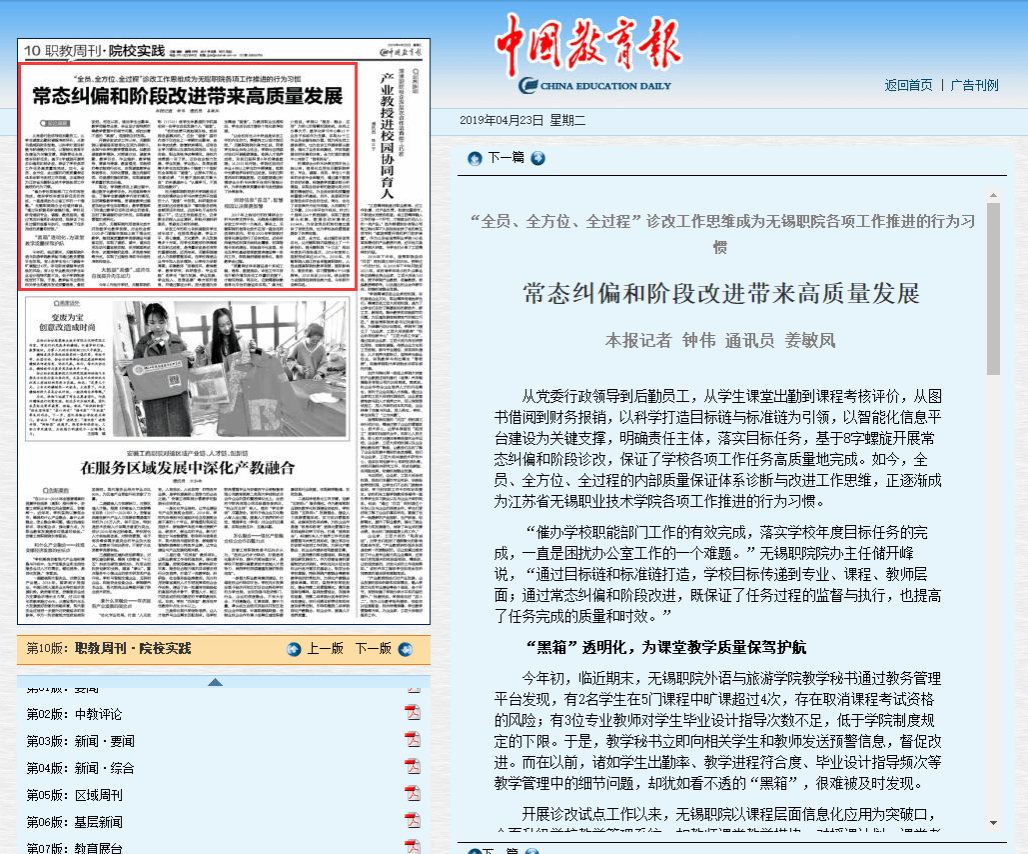 【中国教育报】常态纠偏和阶段改进带来高质量发展