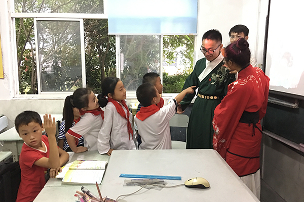 汉服社同学与孩子们交流