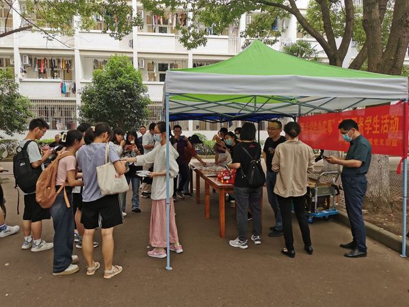 在食堂门前的主干道上,支部党员们热情招呼每一位前来的学生,分发印有本次活动具体安排的小团扇。学生们积极响应,通过学习通扫码参加“知识竞赛”答题,按规则,每位参与的同学都能得到解压神器“捏捏乐”一只,答对7-10题的还可以获得“吉祥兔”一只。