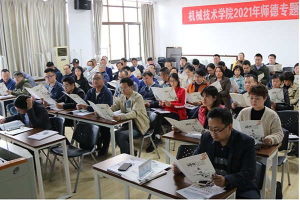 为深入学习贯彻习近平总书记关于教育的重要论述和全国教育大会精神,贯彻落实教育部等七部门《关于加强和改进新时代师德师风建设的意见》及省委教育工委、省教育厅《关于印发全省师德专题教育实施方案的通知》要求,全面系统地加强师德师风建设工作,10月22日下午,机械技术学院在工业中心S207会议室召开师德专题教育大会,分院领导及全体教师参加会议,会议由机械学院党总支副书记张静主持。
