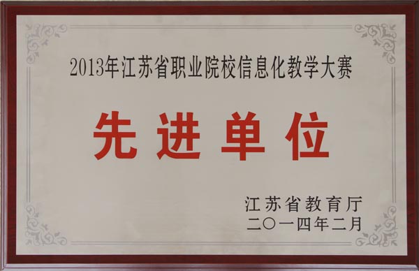 近日,省教育厅发文对参加2013年全国职业院校信息化教学大赛的获奖院校和选手进行了表彰,30家职业院校和54名先进个人上榜,我校获再次“2013年江苏省职业院校信息化教学大赛先进单位”称号,机械技术学院徐安林老师获“2013年江苏省职业院校信息化教学大赛先进个人”称号。