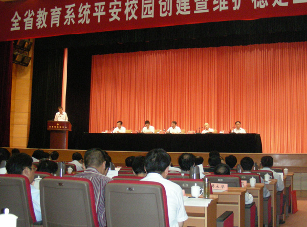 省教育厅沈健厅长、省综治办徐保刚处长、省公安厅秦军副厅长分别作了重要讲话,省综治办、省公安厅、省教育厅领导从不同角度对平安校园创建和维护安全稳定工作提出了明确要求,学校将认真学习,抓好工作落实,把我校平安校园建设推向新的高潮。(张格物)