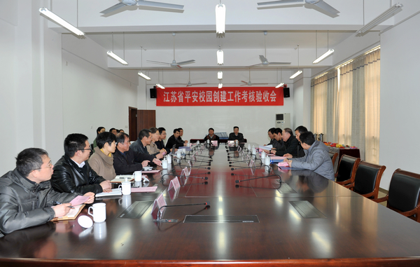 3月14日下午,由省教育厅安全保卫与维护稳定处魏赞荣处长为组长的“江苏省平安校园”创建工作考核验收专家组一行5人来到我校,对我校平安校园创建工作进行考核验收。无锡市教育局、公安局、综治办相关领导陪同考察。我校戴勇校长、谈向群副书记等领导及相关部门负责人出席了考核汇报会。