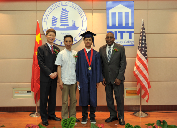 6月16日下午,我校中美合作办学项目首届毕业典礼在太湖校区国际交流中心二楼报告厅举行。在这场简洁而意义深远的毕业典礼上,有35名同学获得美国皮特社区学院专业证书,其中14名同学还获得了皮特社区学院的副学士学位。