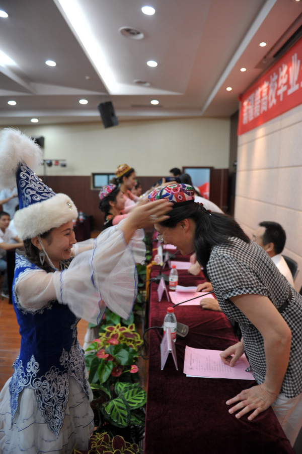 6月20日下午,新疆籍高校毕业生适岗培训班结业典礼在国际交流中心二楼报告厅举行,53名学员完成了在我校的文化课程学习,即将开始为期半年的实习。