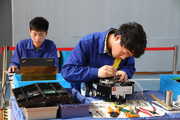 参赛队员在装配机器人