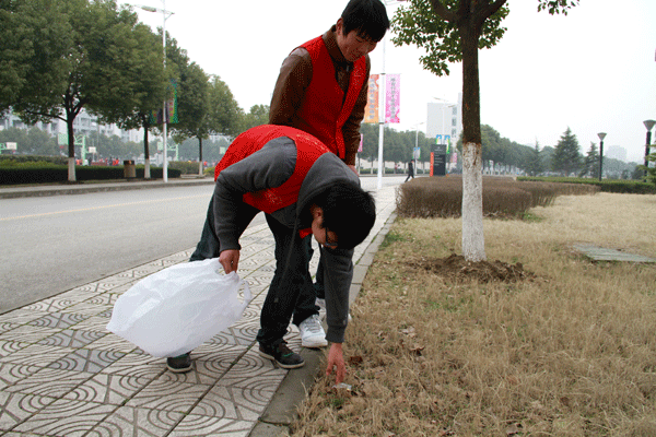 志愿者清洁校园环境