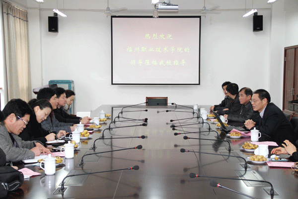 2月22日上午,福州职业技术学院刘松林副院长一行6人来我校考察交流。我校谈向群副书记和学生处、后勤部门相关负责人在国际交流中心205会议室接待了宾客。