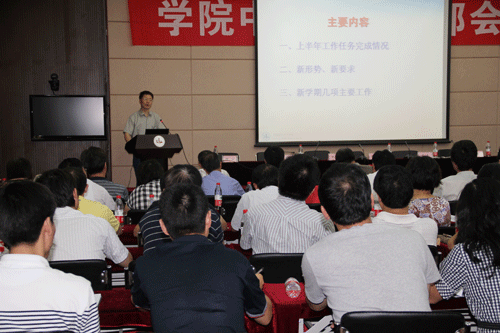 会议由院党委书记朱爱胜主持。院党委副书记谈向群从中心组(扩大)学习、教师各类培训、留校学生工作、社会培训和服务、招生工作、暑期社会实践活动、专业及毕业生调研、教学资源库建设、国际交流、开学准备工作等方面通报了暑假期间加班情况。院长戴勇在回顾上学期工作,分析新形势、新要求后,部署了新学期“以生为本,扎实推进创先争优实践活动”、“推进人事制度改革,重点探索师资队伍建设新思路、新举措”、“研究和开发一批教研和科研课题”、“推进物联网示范校建设”、“启动新校区二期续建项目”、“推进省高等教育综合改革试点三个项目”、“完成省普通高校公共艺术课程、公共体育课程等专项考核评估工作”、“做好服务企业工作,提升学院整体办学活力”等主要任务。