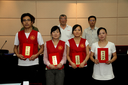 在接下来的西部、苏北计划志愿者服务出征仪式上,学院团委表彰了杨小妍、顾明成、谭晴晴和彭凯迪四位同学,并向其颁发证书。其中杨小妍作为西部计划志愿者将赴陕西进行志愿服务,其他三位同学将作为苏北计划志愿者奔赴盐城、徐州、宿迁。此外,去年通过西部计划招募赴贵州志愿服务的栗新蕾和王峰两位同学,在西部扎实工作一年后,今年又毅然决然地选择续签,继续在西部奉献自己的青春和智慧。出征仪式上播放了反映栗新蕾同学一年来工作、生活情况的幻灯片,以及他对母校和同学们的问候,令在场的志愿者们动容。