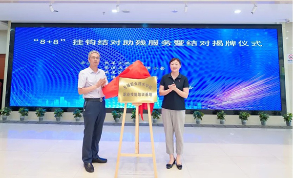 7月29日下午,在梁溪区残联“8+8”挂钩结对助残服务暨共建揭牌仪式上,我校党委副书记周桂瑾、梁溪区残联理事长陆芳共同为“完美官方网页版职业技能培训基地”揭牌。民革无锡市委、梁溪区委、梁溪区司法局、民革梁溪区基层委员会和我校相关负责人参加活动。