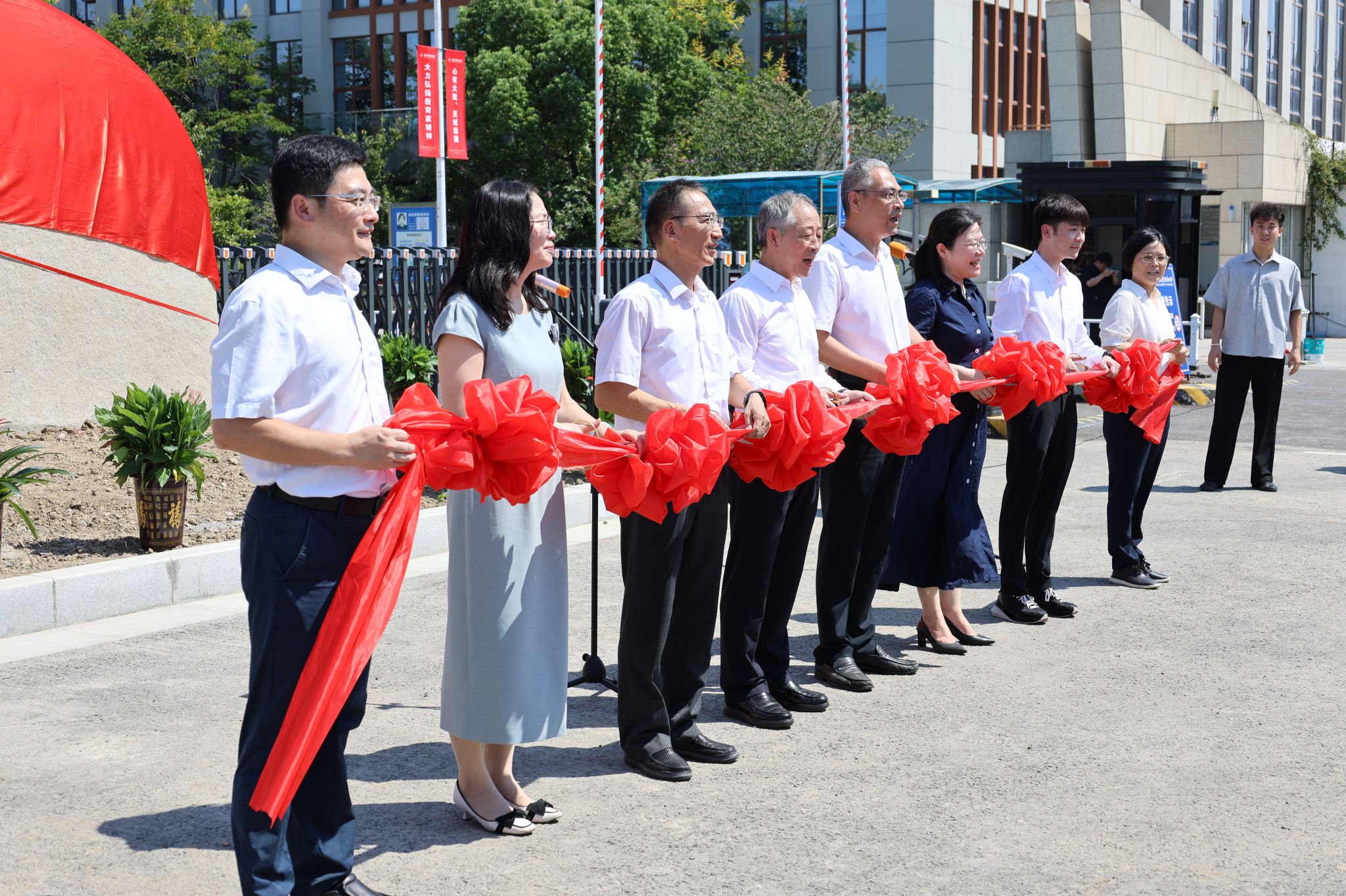 当天上午无锡智能自控工程股份有限公司董事长兼总经理沈剑标等来校,与校领导龚方红、周桂瑾、杨雪琴、吴慧媛、李衔、奚茂龙及学校相关职能部门负责人等共同参加了启用仪式。
