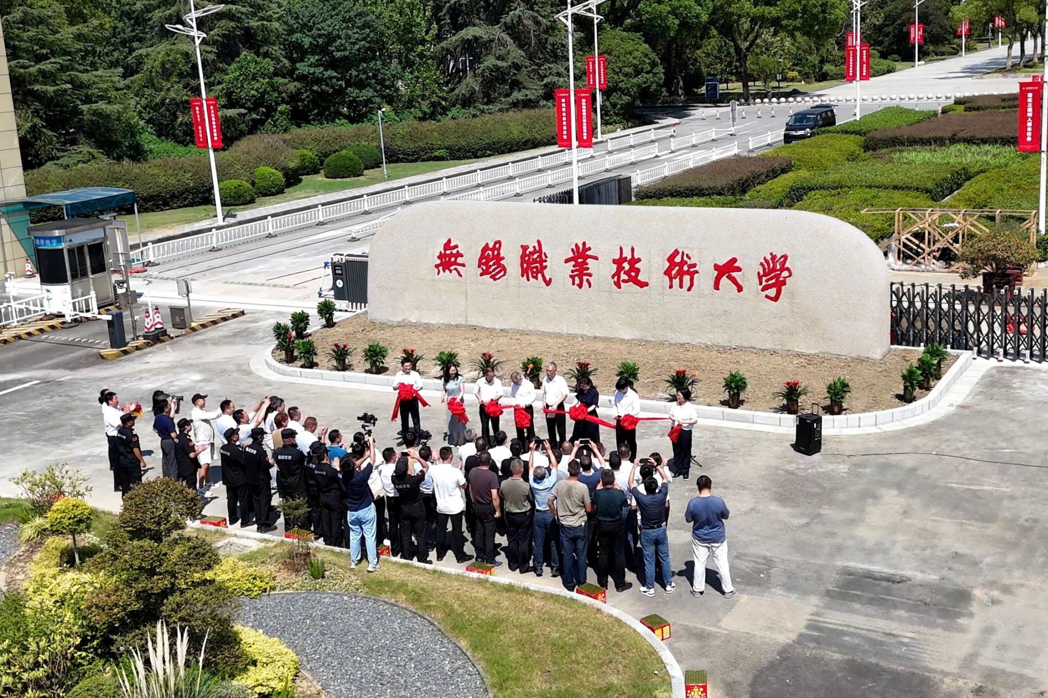 经过20余天改造施工,8月30上午10时18分,校友沈剑标捐建的太湖校区南大门正式落成启用,成为学校发展史上具有里程碑意义的重要时刻。