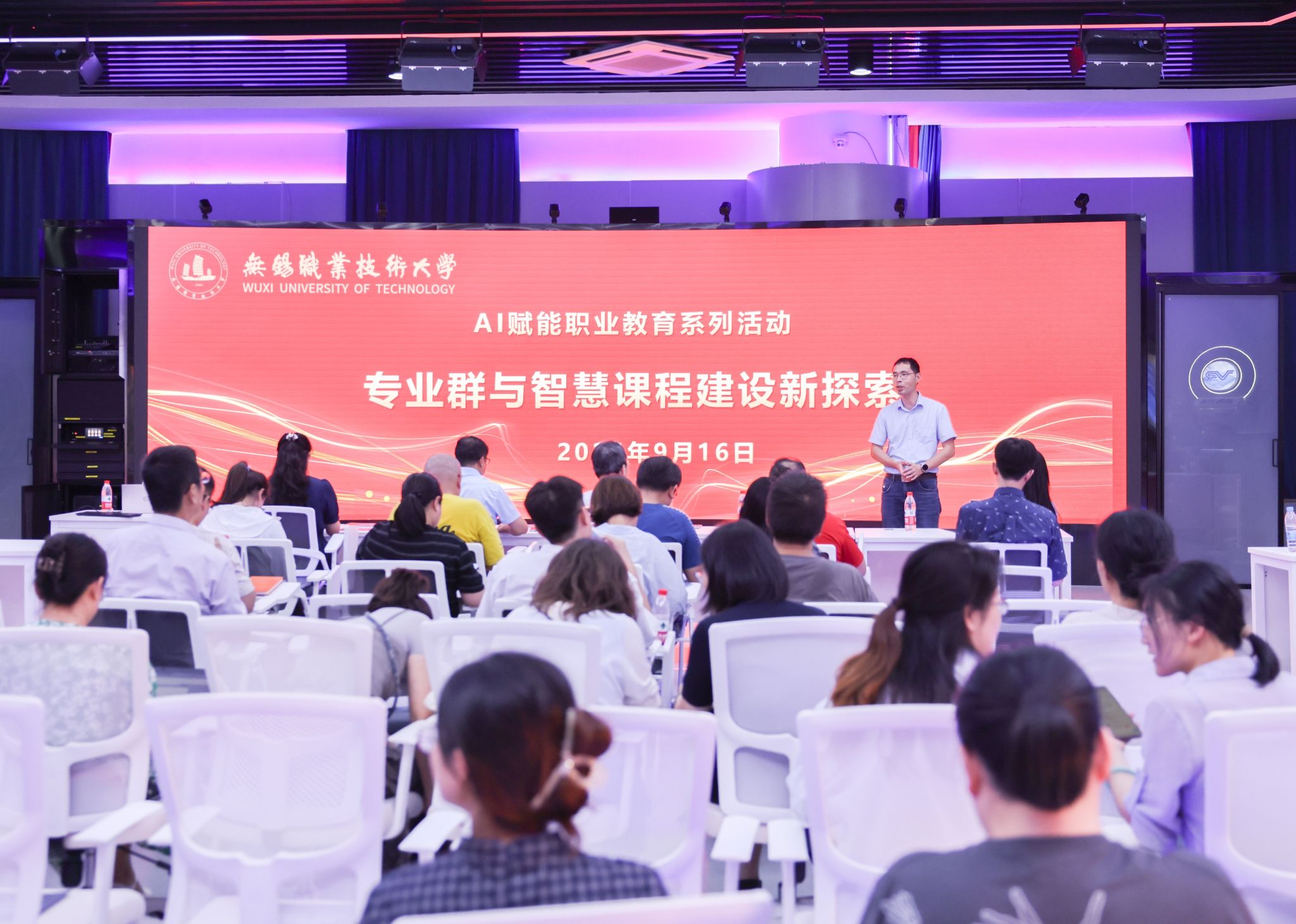 为深入贯彻落实国家关于推动人工智能与教育深度融合的决策部署,加快推进我校职业教育数字化转型与智能化升级,切实提升专业群建设水平与智慧课程建设质量。9月16日下午,学校在公共虚拟仿真实训中心举办了AI赋能职业教育专业群与智慧课程建设研讨会。副校长奚茂龙、教务处负责人、各教学单位教学主管领导、学校首批设置本科专业和第二批拟申报设置本科专业的专业负责人及骨干教师等六十余人参加会议。