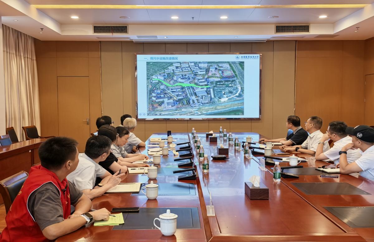 座谈会上,调研组听取后勤管理处关于雨污水管网排查及改造工作进展,并提出下阶段工作建议,要求属地水务部门尽快排查学校雨水总排口与蠡湖大道一侧雨污水管网错接漏接情况,找到问题根源,彻底解决;校方加强设施管养,落实校内雨水管网疏通清淤工作,着力削减入河污染物;通过校内雨污分流改造、污水管网运行养护等措施,着力提高污水处理厂进水浓度。