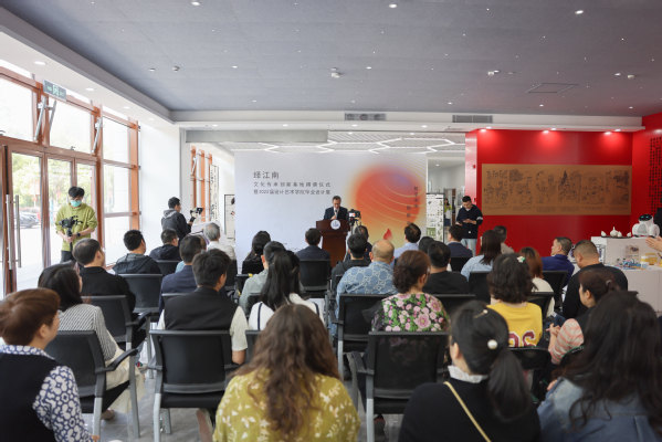 设计艺术学院院长杨敏对本次活动进行了介绍。她表示,近年来,学院在智能制造特色校背景下,坚持特色教学理念,加强产教融合、校企合作,始终致力于区域文化的传承创新研究。本次毕业设计展展示了同学们对江南美景和江南文化的感知力、观察力和表现力。