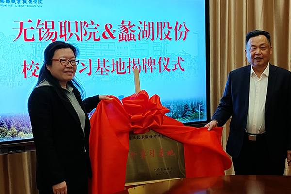 座谈会后,吴慧媛、王洪其分别代表校企双方共同签署校企共建实验室(工业大数据)框架协议,并为蠡湖股份校外实习基地揭牌。