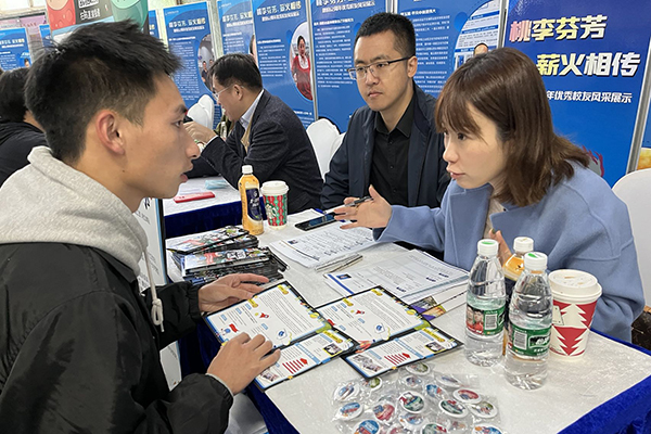 党委委员、组织部长朱翔亲临现场与用人单位、求职毕业生亲切交谈,访企拓岗的同时助力毕业生坚定就业信心。