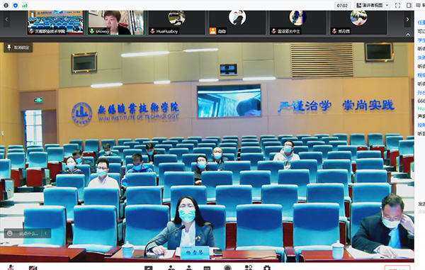 为认真落实党中央、国务院决策部署和省委、省政府、无锡市疫情防控工作要求,从严从细从实抓好疫情防控工作,4月10日下午,我校召开疫情防控暨学生工作线上专题会。副校长杨雪琴出席会议并讲话。学生处、校团委、各二级学院分管学生工作书记、全体辅导员参加会议。会议由学生处处长徐悦主持。