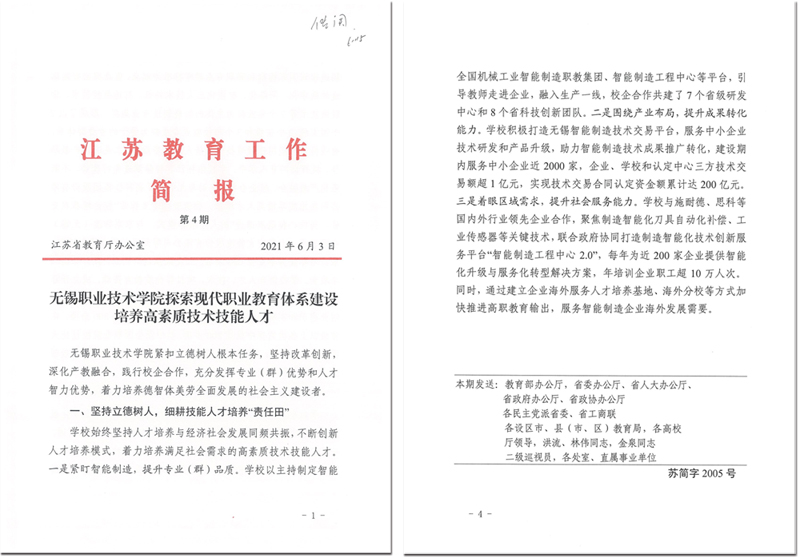 6月3日,省教育厅简报以“完美官方网页版探索现代职业教育体系建设 培养高素质技术技能人才”为题,从“坚持立德树人,细耕技能人才培养‘责任田’”“ 注重内涵建设,牵住教育教学改革 ‘牛鼻子’”“ 强化创新引领,激活赋能产业发展‘一池水’”等三个方面对我校“探索现代职业教育体系建设”工作进行了专题报道。