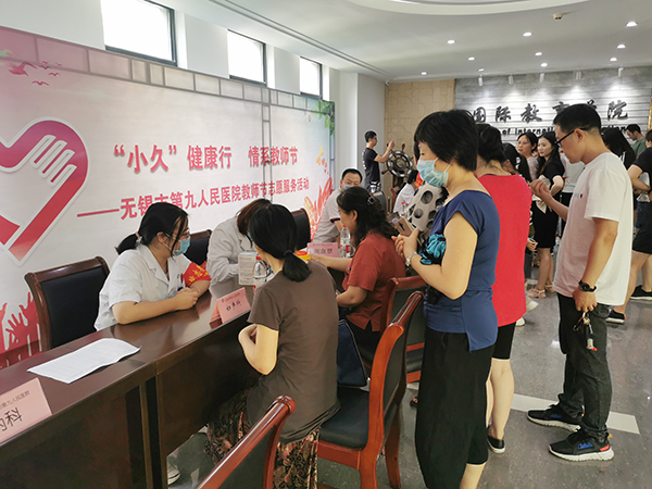 为宣传健康理念、倡导健康生活,9月8日,在第36个教师节来临之际,校团委与校工会联合邀请无锡市第九人民医院组织“名医专家团”来我校开展“‘小久’”健康行,情系教师节”志愿义诊和健康讲座活动,为广大教师送上一份特殊的节日礼物。
