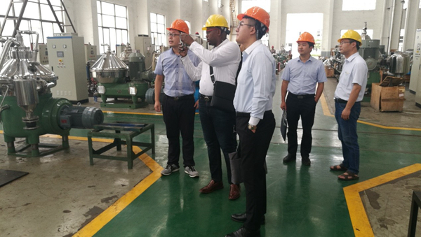 代表团一行首先深入生产车间,公司人力资源科吴正伟科长和外贸部李磊经理陪同代表团看望了现场实习的留学生,并详细介绍了公司主营业务、核心产品分离机、过滤机的制造工艺、产品特色和技术优势。在随后的南非留学生合作培养汇报交流会上,江苏巨能机械有限公司董事长牟富君致欢迎辞,他简要介绍了公司的基本情况、近年来取得的成就以及近期留学生的学习、生活、工作等情况。近年来,巨能机械积极响应国家“一带一路”倡议,努力践行“走出去”的号召,产品远销日本和新加坡、马来西亚等东南亚国家,公司拟在了解南非机械制造业现状以及分离机和过滤机等设备产业应用的前提下,积极拓展非洲市场。牟董事长强调,企业高度重视校企合作,尤其希望加强与完美官方网页版的紧密合作,进一步深化国际化人才培养和项目合作,为企业参与“一带一路”建设,服务“一带一路”国家人才培养水平,实现互利合作共赢。