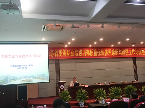 根据《江苏省高等职业院校内部质量保证体系诊断与改进工作专家委员会》(苏高诊改[2018]3号)通知,为全面深入推进全省高职院校诊改工作,省高职院校诊改专委会受江苏省教育厅委托,于2018年9月29日组织召开了江苏省高等职业院校内部质量保证体系诊改工作培训会暨专委会工作会议。江苏省教育厅王成斌副厅长、江苏省教育厅高等教育处邵进处长、江苏省高职诊改专委会主任委员丁晓昌、江苏省高职诊改专委会副主任委员史国栋等领导出席会议并讲话。我校龚方红校长率教务处、人事处、信息化中心、学工处、校办、质控部等部门相关部门负责人全程参加了此次会议。