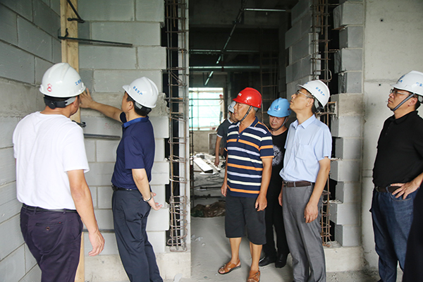 校领导一行来到梅园学生宿舍及在建的9号楼学生公寓等场所,认真察看了暑期维修项目进展情况,以及在建工程的施工现场,并召开现场办公会,听取相关部门负责人对项目实施和完成情况的汇报,讨论解决走访过程中遇到的问题。