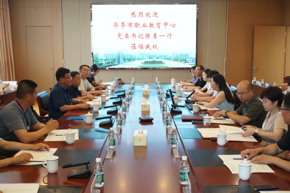 6月13日下午,华亭市职业教育中心党委书记陈勇一行访问我校,重点就内部治理体系、校园文化、产教融合、专业建设等专题开展调研。我校党委副书记杨雪琴,党校办、教务处、科产处及继续教育培训部相关负责人在厚德楼F201会议室接待了来访一行。