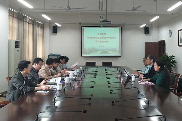 4月26日上午,湖南高速铁路职业技术学院副院长赵宏旭率领相关部门负责同志来我校考察交流。副校长周桂瑾及相关职能部门负责人在国际交流中心205会议室接待了来访客人。