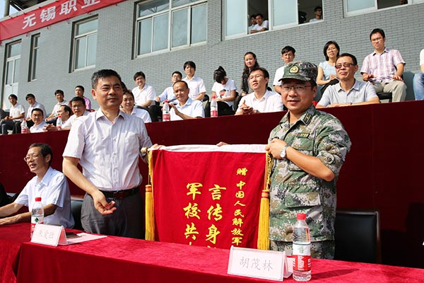 随后,校党委副书记谈向群宣读了表彰决定,2016级新生中共有175名同学在军训期间表现出色,获评优秀学员称号;党委书记朱爱胜代表学校向承训部队、人民解放军71031部队赠送锦旗。