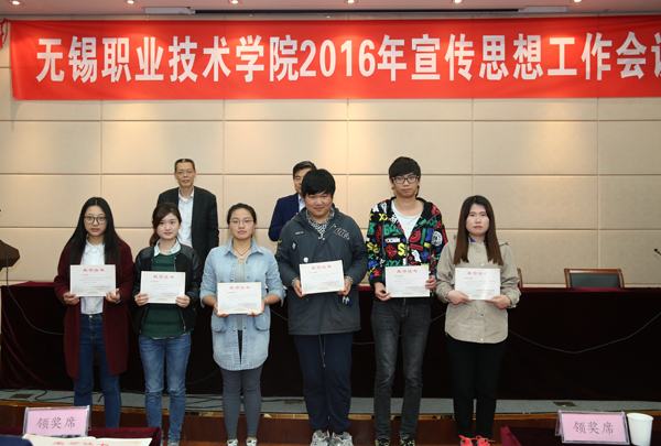 与会领导为获表彰的先进集体和个人颁发了证书,吴慧媛、赵健、徐悦三位同志分别作为先进集体、先进个人和优秀二级网站代表作交流发言。随后,谈向群副书记宣读了2016年学校各部门、学院对外宣传报道指标。
