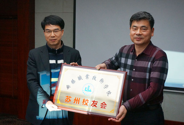 朱爱胜书记向苏州校友会授牌
