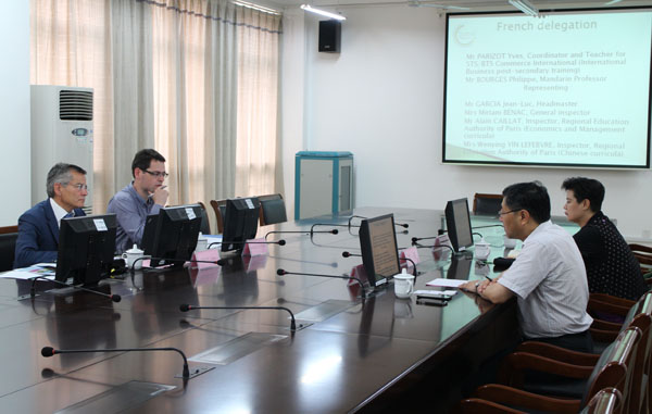 6月23日至24日,法国巴尔扎克国际高中国际项目主管Yves一行2人来我校访问,就两校师生交换、教师培训等合作项目进行洽谈。副校长冯渊及国际教育学院、管理学院、财经学院等相关部分和院系负责人参加了交流。