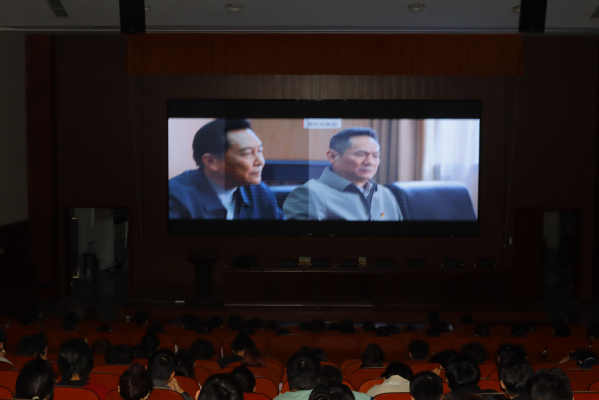 为献礼学校思想政治理论课教师座谈会召开五周年,积极推动构建大思政课工作格局。4月11日晚,全国首部思政课题材轻喜剧影片《我要当老师》在我校国教一楼报告厅温暖献映,马克思主义学院教师及学生代表等350余人参加观影,同上一堂鲜活生动的思政课。
