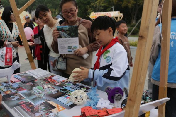 在活动中,“蒲公英”支教实践团设立了创意摊位,志愿者们通过展示彰显机械特色、饱含深情与感染力的社会实践图片,匠心独运、精致无比的3D打印作品,以及栩栩如生、惟妙惟肖的立体纸艺佳作,向现场群众和嘉宾介绍了驿路“童”行志愿服务项目的背景、目的、实施情况以及取得的成效,体现了支教实践团的志愿精神、创新意识和实践热情。值得一提的是,此次活动创新性采用 “竞拍接单”的方式,驿路“童”行志愿服务项目成功竞拍到了胡埭镇富润社区、立人社区、鸿翔村、夏读村等多个社区的制单需求。