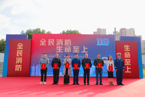 在第33个全国消防日即将到来之际,无锡市滨湖区消防大队举办了以“全民消防、生命至上”为主题的“119”消防宣传月启动仪式,我校应邀参加。