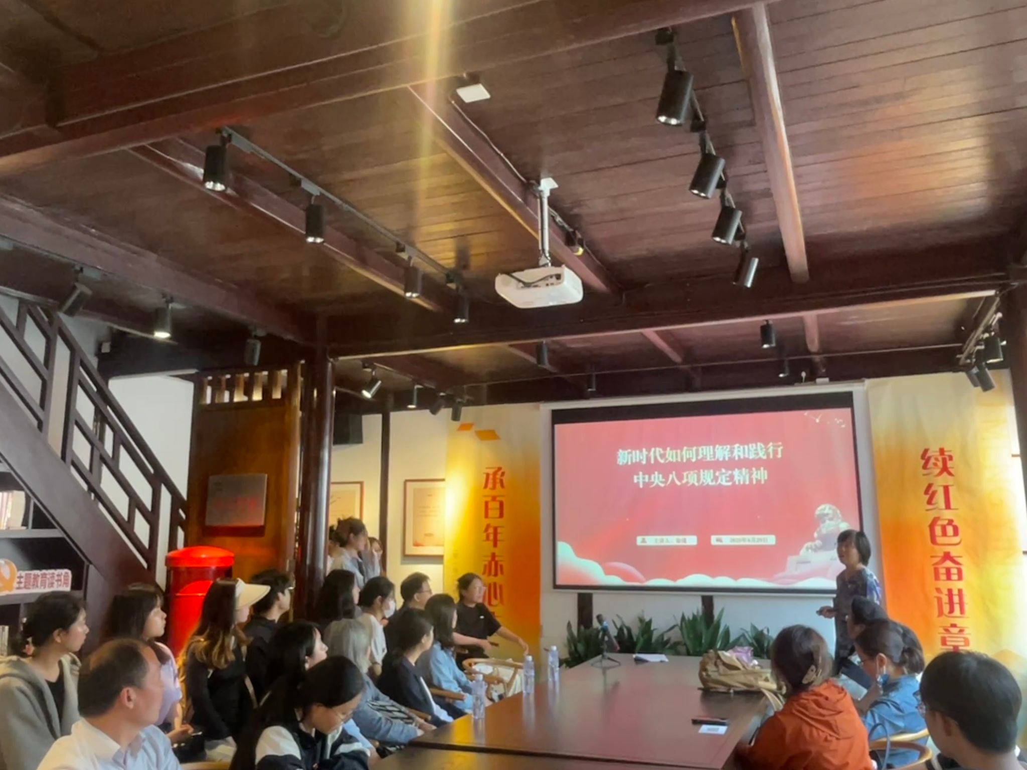 初心如磐不改,使命如炬长明。在徐梦影故居,全体党员沉浸式感受这位呐喊着“愿化狂潮涤浊流”革命先辈的爱国壮举。白墙青黛、斑驳砖瓦、泛黄家书、褪色长衫、老旧书桌……在讲解员的引导下,我们似乎看到了徐梦影挑灯夜读、开办夜校、投身革命的峥嵘岁月,简朴的陈设彰显其淡泊名利、廉洁自守的人格,也让广大党员深切体会到了作风建设永远在路上的重要意义。