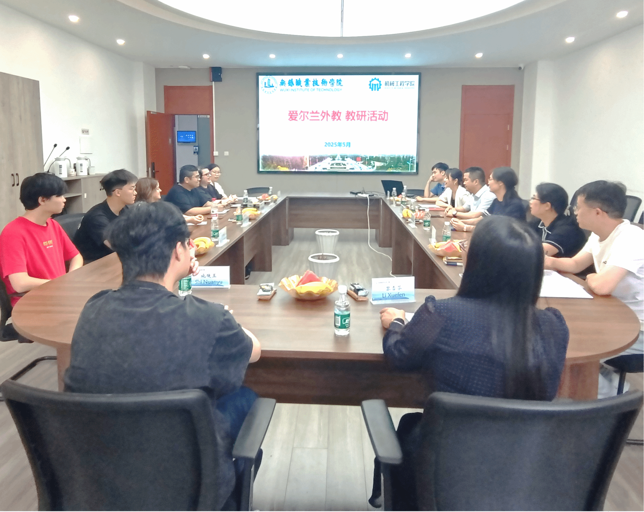 为深化国际教育合作,提升中外联合授课质量,5月20日下午,机械工程学院召开爱尔兰外教线下教研活动。机械学院院长王骏、副院长唐霞,爱尔兰香农理工大学授课教师Emma Murphy、Eyman Hadi Abd Manaf、Sam O'Sullivan,以及数控系、机电系、材料系和机械基础部的教师代表和学生代表参加了会议。