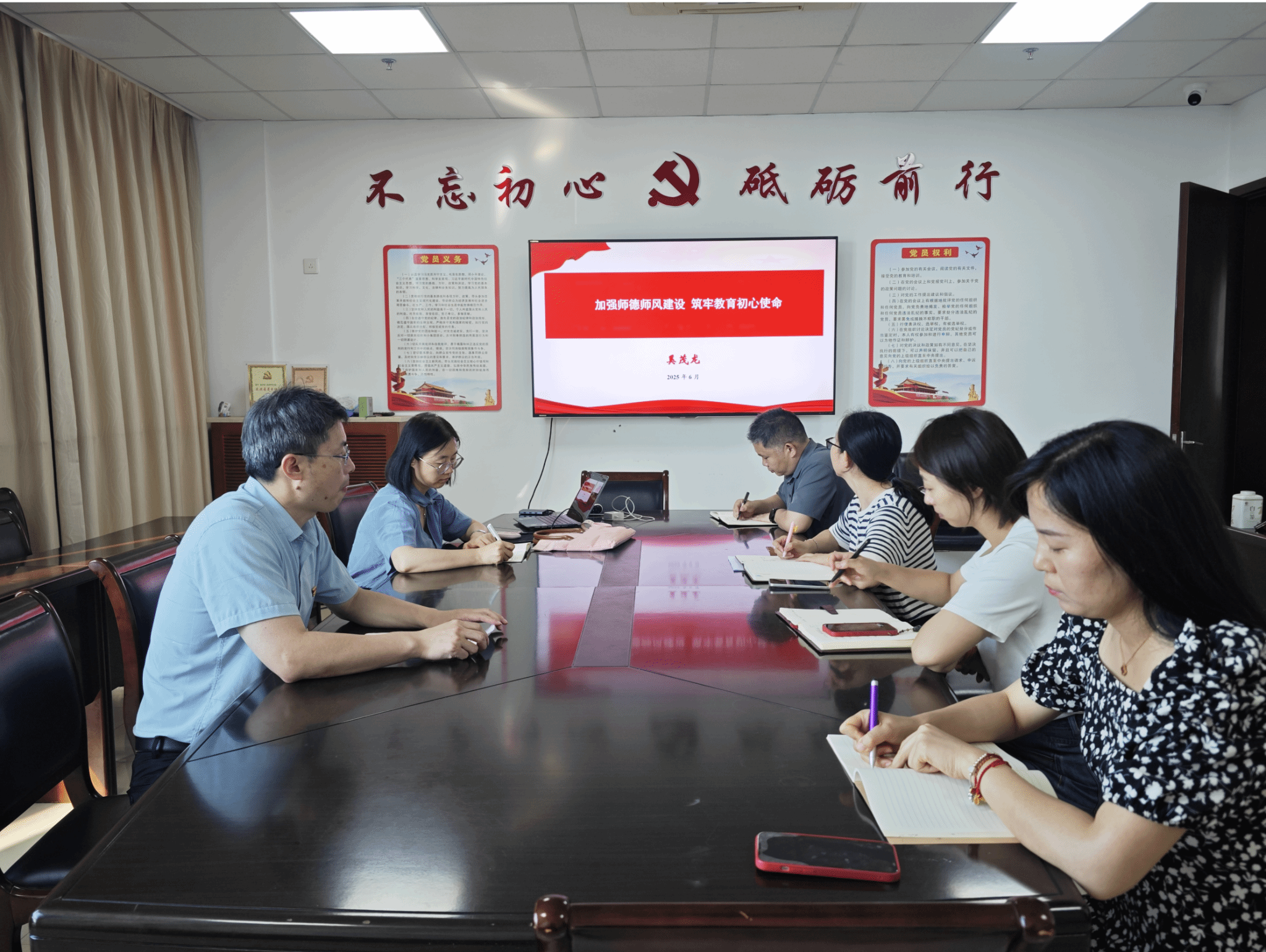 为进一步聚焦新时代职业教育核心任务、深化落实国家师德师风建设要求, 6月30日下午,副校长奚茂龙以《加强师德师风建设 筑牢教育初心使命》为主题在厚德楼902会议室讲授专题党课,质量监督与控制部党支部全体党员参加。