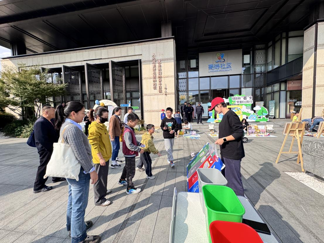 活动现场,针对社区参与活动以青少年儿童为主的情况,工作室联合社区放弃传统说教模式,巧妙设计了趣味问答、分类投掷、垃圾分类卡片对决等互动环节,让他们通过亲手操作和激烈比拼,将刚学到的知识转化为本能,让抽象的垃圾分类知识变得可观、可感、可玩,引导孩子们在“玩”中学,在“乐”中悟。