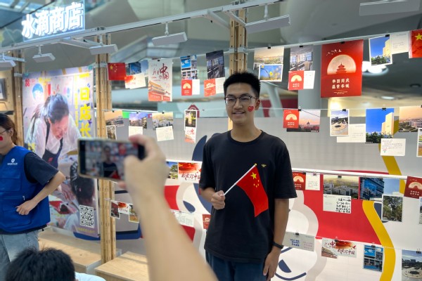 活动中,志愿者们邀请家长和孩子进到水滴商店,了解残友公益项目,制作手工作品。国庆将至,孩子们深受氛围感染,小手用心地拼贴,完成了一幅幅精美的画卷。“祝祖国母亲75周岁生日快乐!”孩子们与志愿者手拉着手,录制下为祖国华诞送上祝福的视频。“我是哈尔滨工业大学大一新生,我的愿望是通过自己的不懈钻研,打破国外对芯片材料的垄断!”一名青年掷地有声地说出自己的理想。志愿者还鼓励孩子们努力学习本领,未来一同为社会主义现代化强国建设做出贡献。