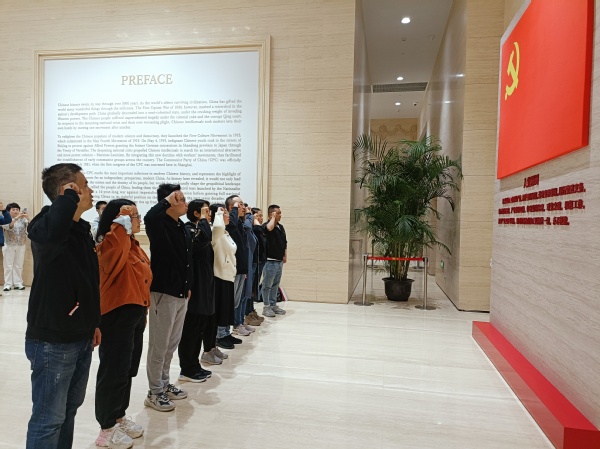 上午,党员们参观了中共一大会址纪念馆,通过一件件珍贵的文物、一份份厚重的史料、一幅幅鲜活的照片,帮助党员们回望了那段风云激荡的峥嵘岁月。在纪念馆宣誓大厅,党员们面向党旗、高擎右拳、重温入党誓词。