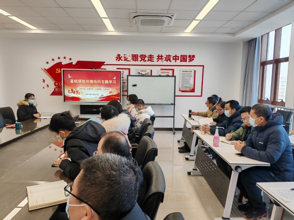 为进一步推动师德师风建设,强化教师责任意识,提高职业道德素养,营造风清气正的教书育人环境,1月25日上午,基础课部利用期末集中教研活动组织全体教师开展“以德立身、以德立学、以德施教、以德育德”师德师风专题学习。