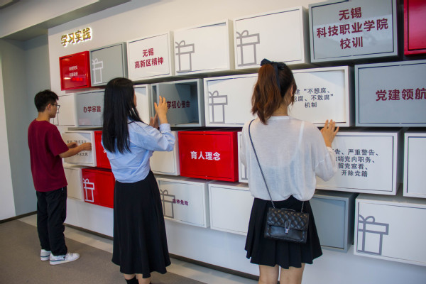 无锡高新区(新吴区)学习强国线下体验馆位于无锡科技职业学院内,约1500平方米,是线上线下结合、高校与社区融合的全国体量最大的“学习强国”线下体验馆,创新了“课堂+基地”的“学习强国”线下学习教育模式,是学习教育新阵地、理论武装新阵地、思政课外新阵地、知行示范新阵地。